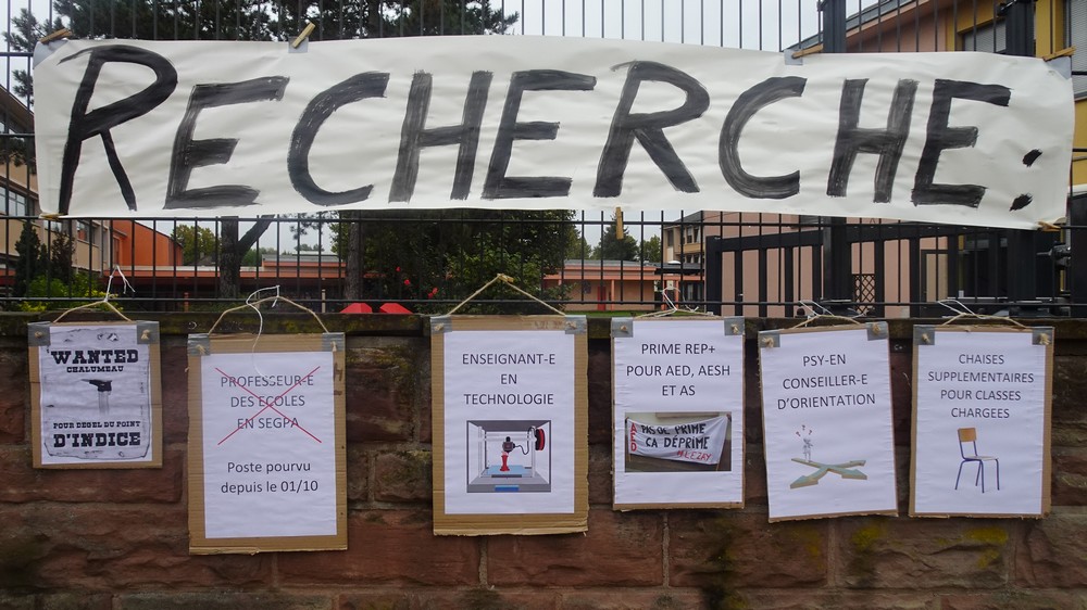 « La pénurie d’enseignants que nous vivons, comme d’autres établissements, nous a fait réagir dès la rentrée, dans l’optique d’une action pour alerter le rectorat », nous explique Frédéric Laumont, professeur de français impliqué dans le mouvement. « Nous avons finalement choisi la journée de grève nationale de ce mardi pour mettre en lumière les dysfonctionnements que nous subissons, ainsi que nos élèves ». Depuis la rentrée, un enseignant en technologie et un psychologue de l’Éducation Nationale manquent à l’appel. Un poste de professeur en SEGPA manquait aussi depuis début septembre et sera pourvu par le recours à un contractuel. « Ce poste était vacant depuis deux ans, sous une forme ou une autre », explique Frédéric Laumont. « Tout ce temps-là, les élèves n’avaient pas cours dans certaines matières ». Les enseignants mobilisés (la moitié de l’effectif de tout l’établissement, selon notre interlocuteur) mettront également en avant demain leur revendication de longue date concernant les assistants d’éducation et les accompagnants d’élèves en situation de handicap. L’idée est qu’ils puissent bénéficier de la prime mensuelle de 400 € qu’ont les enseignants en zone REP +.