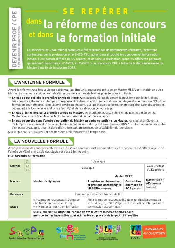 Vous êtes ici : Accueil Catégories Etudiants et stagiaires Se repérer dans la réforme des concours et de l’entrée dans le métier 8 mai 2022 Catégories Se repérer dans la réforme des concours et de l’entrée dans le métier Imprimer l'article
